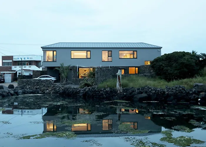 Located in the Jocheon district of Jeju, the beachfront 볼다 Bolda Villa Jeju is nearly a 25-minute walk from the Hamdeok Beach and offers a Jacuzzi. This accommodation includes free private parking and a terrace with views of the sea.